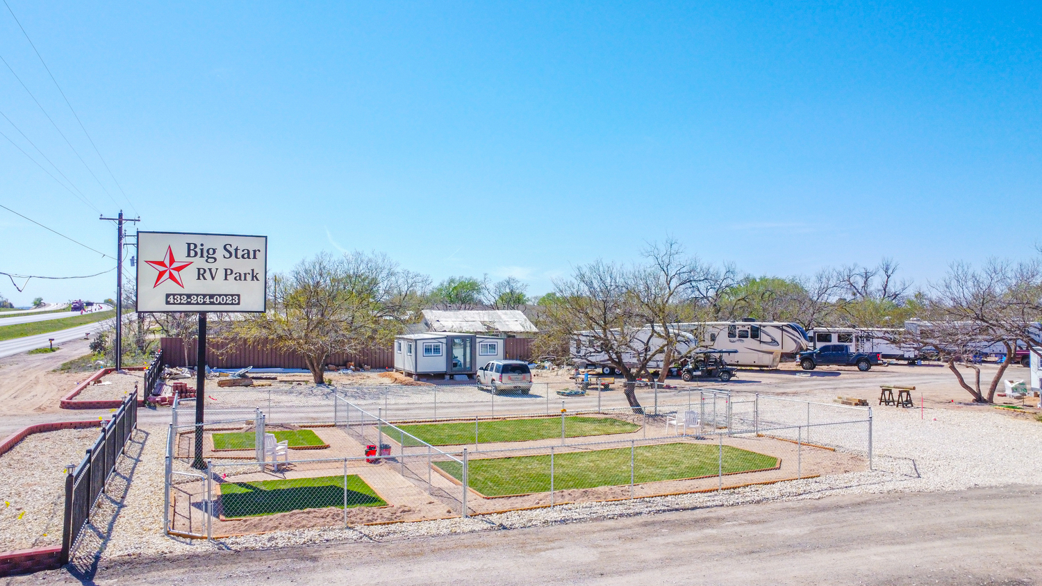 Safety and security are the sole responsibility of the RV site users. Big Star RV Park and their owners, employees, agents, members, partners, officers, directors, representatives, successors, or assigns assume no responsibility or liability for the safety or security, or for injury caused by other persons. RV site users must immediately notify Big Star RV Park at (432) 264-0023, for any unsafe or security issues. RV site users shall not store any combustibles on the premises. Nudity, profanity, and excessive noise will result in eviction without a refund. No fireworks allowed!GUESTS