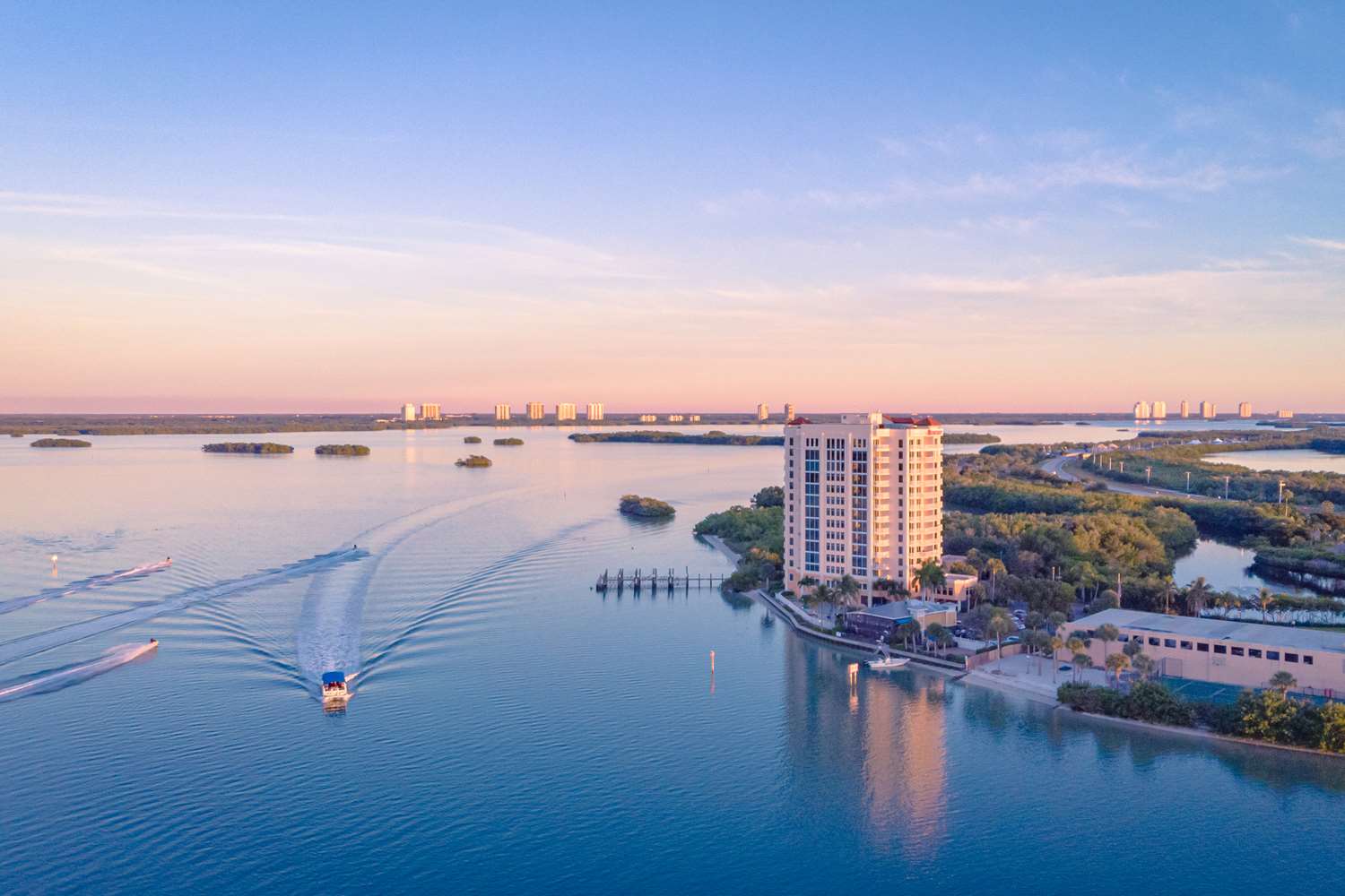 The highlight of these condos is the glorious view from the living room or balcony of the the surrounding waterways and islands. Rooms also include a full kitchen and dining space. Interior Corridors, 13 Stories, Smoke Free, 30 Units