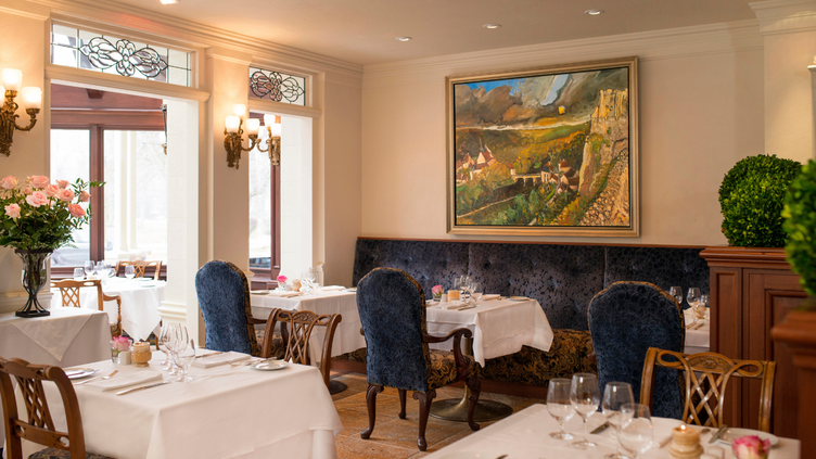 Contemporary French cuisine with emphasis on flavor and clean presentation makes a fine showing here in a most elegant 19th-century Victorian dining room. Attentive service is what you'll experience. A very good selection of Ontario wines is offered. Walls are adorned with fine European artwork, and the tables are set with fine linens, luxurious china and a full complement of elegant silverware. It is a truly luxurious setting.
